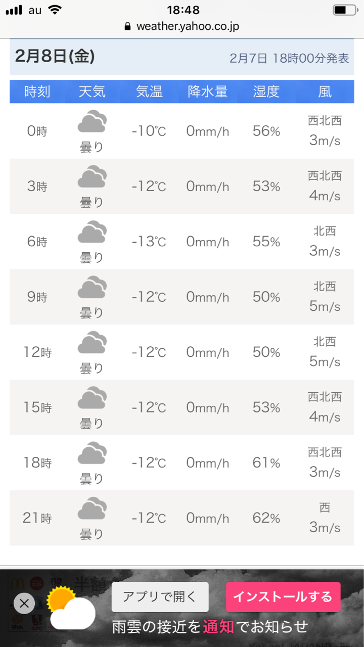 マイナス12度です。