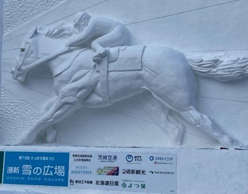 サラブレッドの雪像、素晴らしいですね