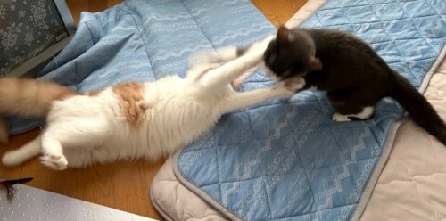 じゃれ合い疲れで、ワルネネコが現れず、平穏な日々です。