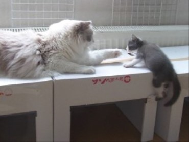 慌てて引き離し、それからは子猫をゲージに入れています。