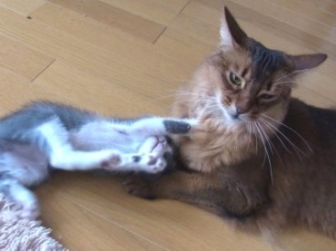 が、迎えた当初、キャリーから出した瞬間スコが子猫に飛びかかり噛みつきました。