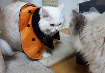 ジェニーちゃん、カボチャ色のケープが良く似合っていますね。