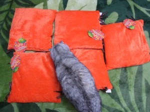 やっぱり同じ色5枚揃わず、赤2枚黄色2枚底に緑とカラフルな猫ベッドが出来ました~